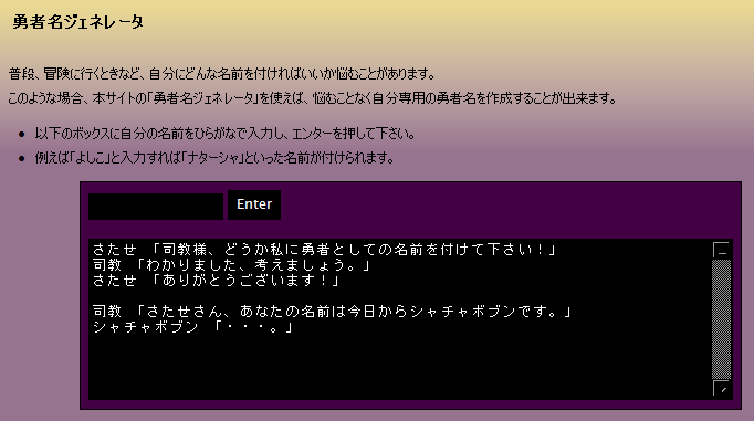↑これは勇者名ジェネレータ。勇者名をつけてくれます。